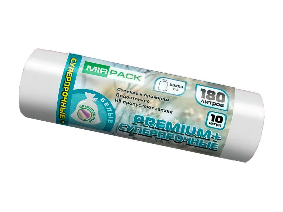Мешки для мусора 180 л, ароматизированные, белые, в рулоне 10 шт., ПВД, 35 мкм, 1100х930 мм, PREMIUM+, 180105302