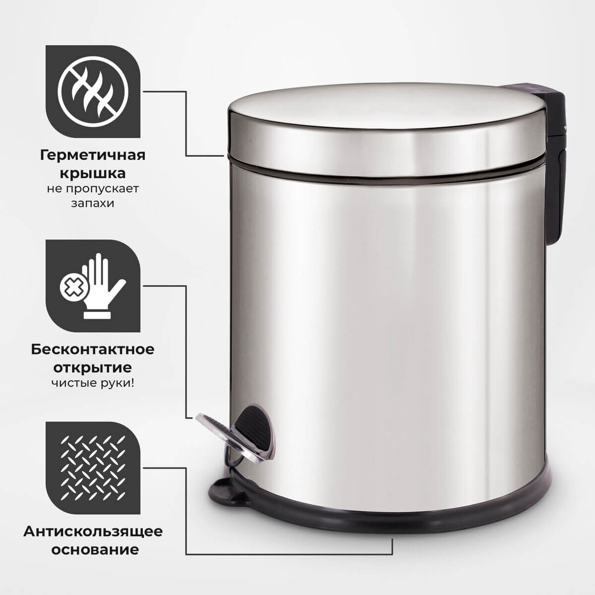 Ведро-контейнер для мусора урна с педалью LAIMA Classic Plus, 5 л, зеркальное в Асбесте